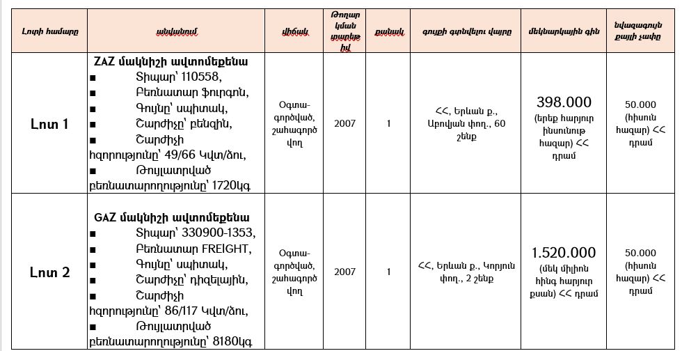 2026 ԹՎԱԿԱՆԻ ՀՈՒՆՎԱՐԻ 12-ԻՆ ԺԱՄԸ 12։00-ԻՆ ԵՐԵՎԱՆ ՔԱՂԱՔԻ ԿՈՐՅՈՒՆԻ 2 ՀԱՍՑԵՈՒՄ ԳՏՆՎՈՂ «ԵՐԵՎԱՆԻ ՄԽԻԹԱՐ ՀԵՐԱՑՈՒ ԱՆՎԱՆ ՊԵՏԱԿԱՆ ԲԺՇԿԱԿԱՆ ՀԱՄԱԼՍԱՐԱՆ» ՀԻՄՆԱԴՐԱՄԻ (ԵՊԲՀ) ՎԱՐՉԱԿԱՆ ՄԱՍՆԱՇԵՆՔԻ ԵՐԿՐՈՐԴ ՀԱՐԿԻ ՆԻՍՏԵՐԻ ԴԱՀԼԻՃՈՒՄ ՏԵՂԻ ԿՈՒՆԵՆԱ ԵՊԲՀ-ԻՆ ՍԵՓԱԿԱՆՈՒԹՅԱՆ ԻՐԱՎՈՒՆՔՈՎ ՊԱՏԿԱՆՈՂ ՆԵՐՔՈՆՇՅԱԼ ՇԱՐԺԱԿԱՆ ԳՈՒՅՔԻ ԲԱՑ ԴԱՍԱԿԱՆ ԵՂԱՆԱԿՈՎ ԱՃՈՒՐԴ ԵՐԿՈՒ ԼՈՏՈՎ