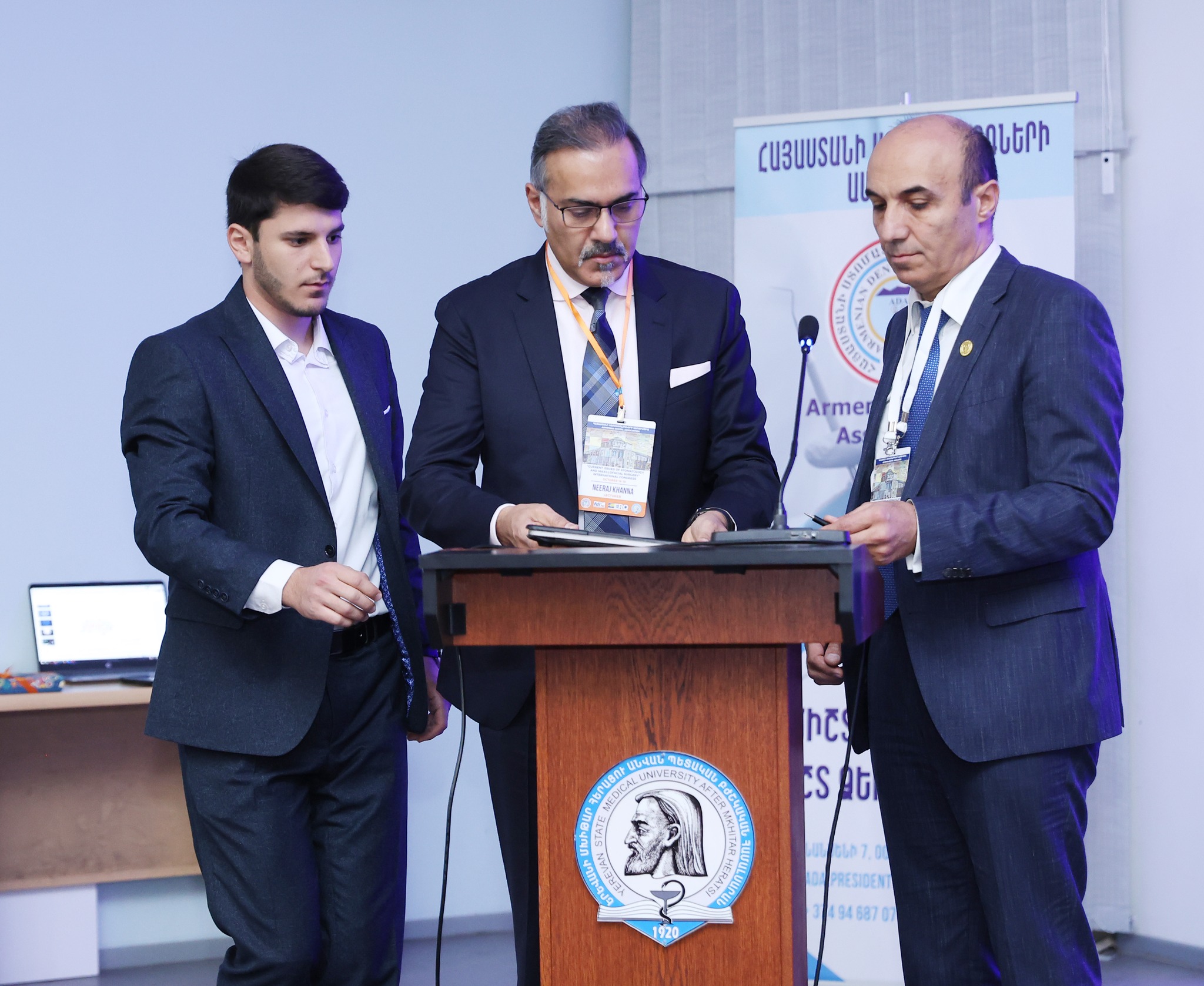 Բժշկական մայր բուհի շրջանավարտ, Մոսկվայի դիմածնոտային, պլաստիկ և վերականգնողական վիրաբուժության կլինիկական կենտրոնի առաջատար անապլաստոլոգ/դիմածնոտային շրջանի պրոթեզիստ Արտավազդ Խարազյանը համաժողովի մասնակիցներին ներկայացրեց գլխի և պարանոցի հետվիրահատական արատների վերակառուցումը իմպլանտային ռետենցիոն համակարգերի միջոցով։