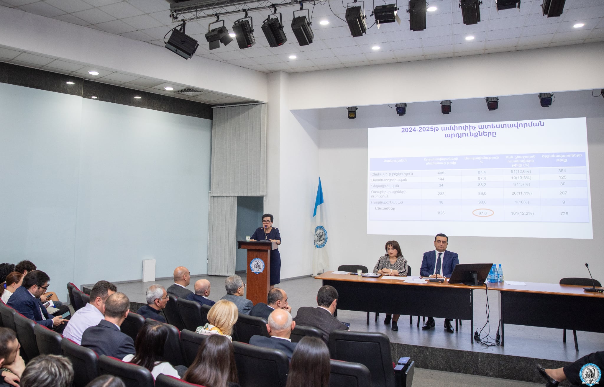 «2024-2025 ԵՊԲՀ բազային կրթական ծրագրերի հավատարմագրման շրջանակում ուսումնական գործընթացում իրականացված և իրականացվելիք գործողությունների բնութագիրը» զեկույցում ԵՊԲՀ ուսումնական աշխատանքների գծով պրոռեկտոր Լարիսա Ավետիսյանը Գիտական խորհրդի անդամներին ներկայացրեց իր տարեկան հաշվետվությունը: