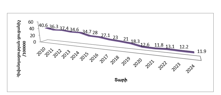 Հայաստանում առաջին անգամ ախտորոշված ակտիվ տուբերկուլոզի հիվանդացության շարժընթացը (2010-2024թթ.)